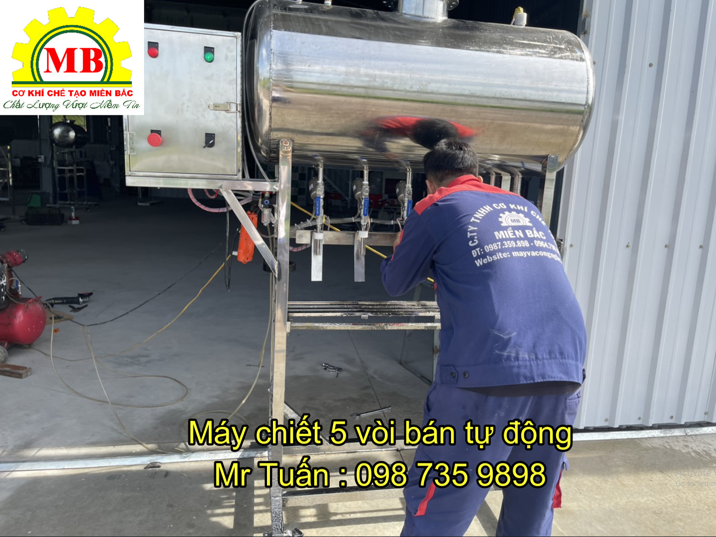 - Máy chiết rót dung dịch 5 vòi do Công Ty Cơ Khí Chế Tạo Miền Bắc sản xuất là loại máy có thể chiết được nhiều loại dung dịch khác nhau từ dung dịch đặc đến dung dịch loãng như : Tương ớt, dầu ăn, nước mắm, nước rửa chén, nước tinh khiết, sữa ....