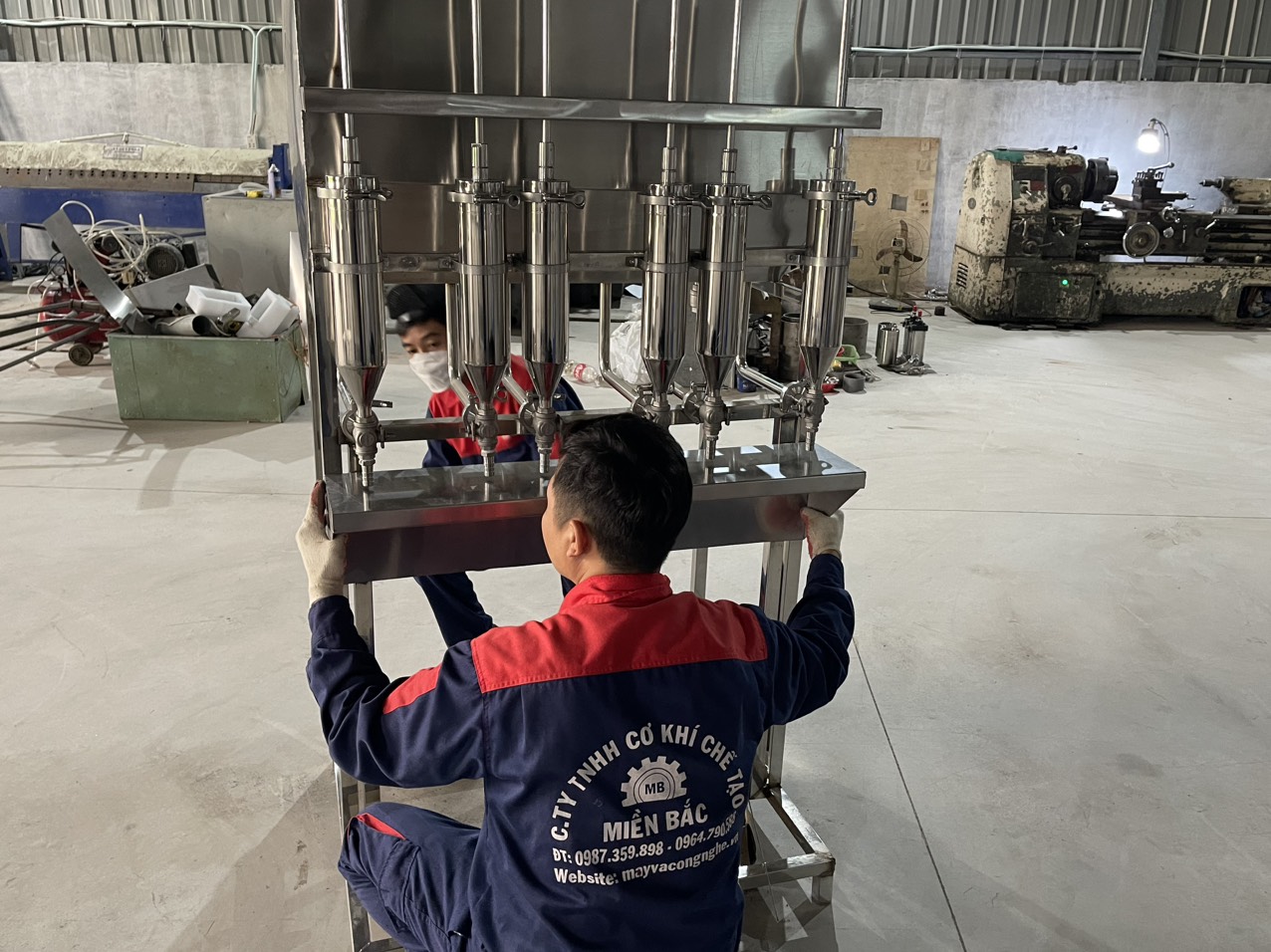 - Máy chiết rót bán tự Động được công ty chúng tôi lắp đặt có kết cấu đơn giản nhưng hoạt dộng rất hiệu quả, định lượng chuẩn tuyệt đối.