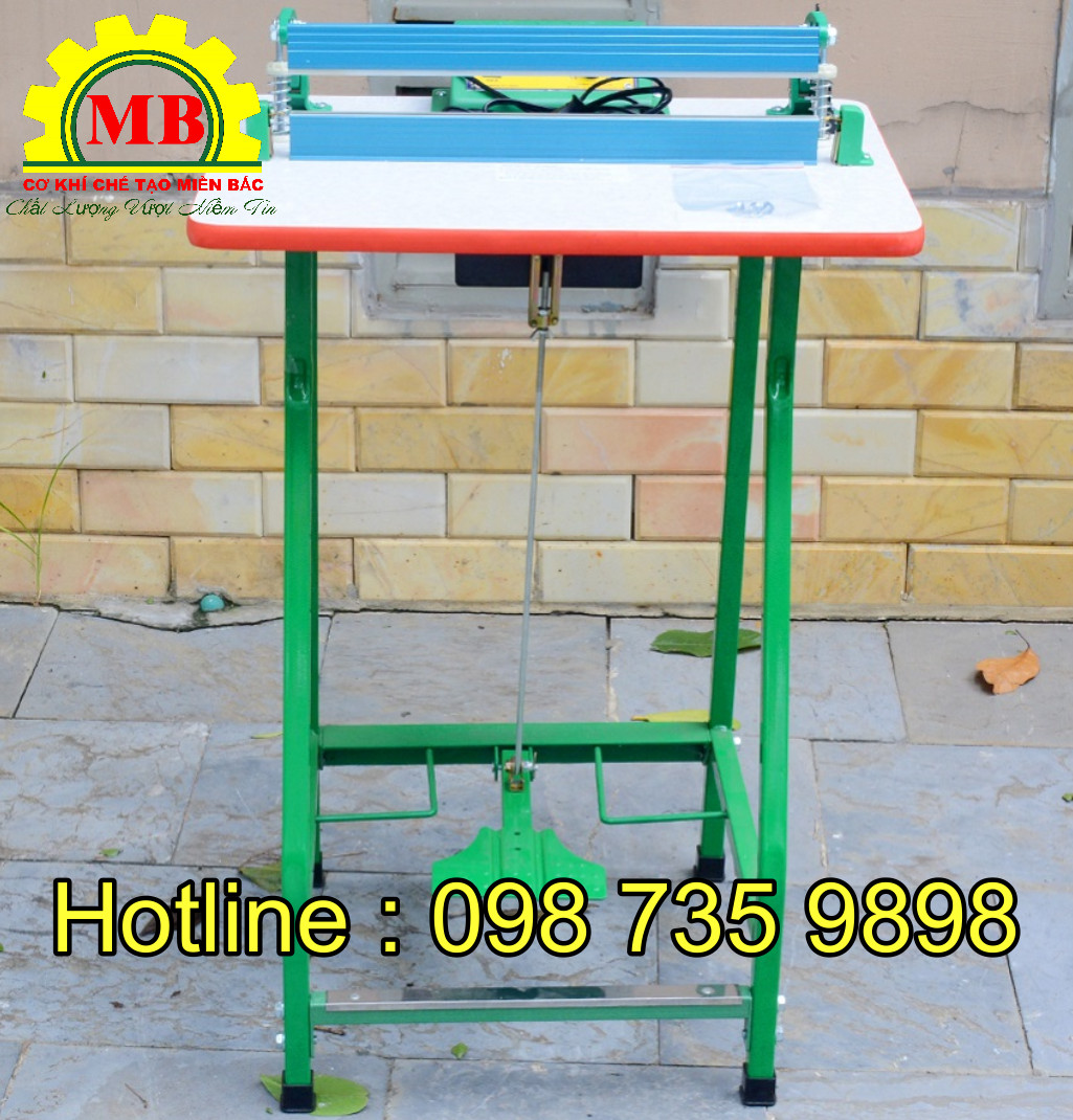 - Máy hàn miệng túi dập chân hay còn gọi là máy hàn túi dập chân má đồng là loại máy hàn miệng túi đơn giản, dễ sử dụng mà công suất lại cao nhất trong dòng hàn miệng túi. Máy có đường hàn chắc chắn, đẹp và đặc biết là máy tiêu hao điện rất ít, sử dụng ổn đinh. Máy có đường hàn tối đa là 40cm. Được các cơ sở sản xuất, các nhà máy vừa và nhỏ tin dùng.