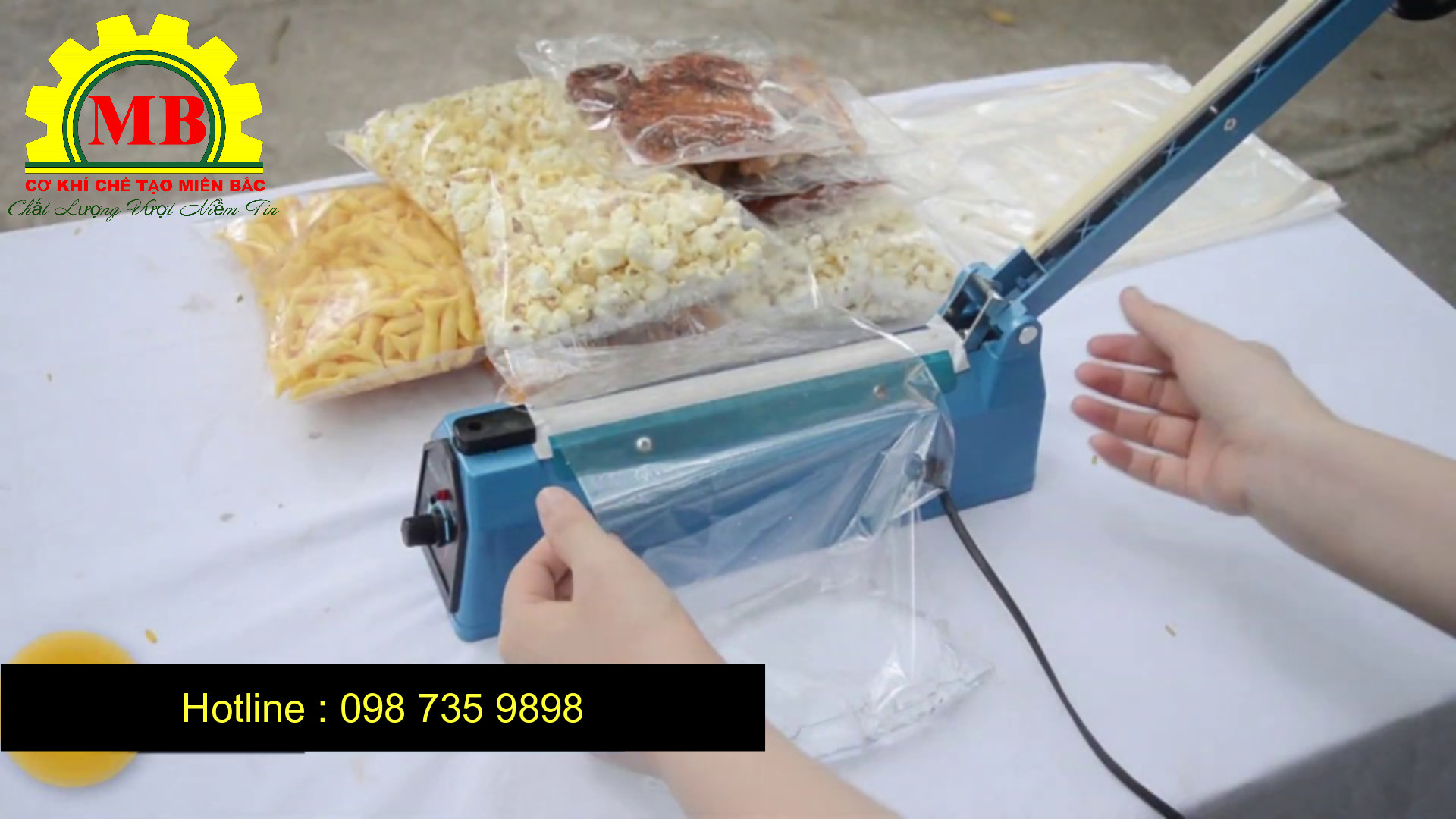 - Máy hàn miệng túi dập tay là sản phẩm giúp cất giữ thực phẩm bằng cách cho vào bọc nylon và dán miệng túi là một trong những cách tốt nhất giúp thực phẩm tươi lâu hơn, tránh vi khuẩn xâm nhập vào thực phẩm.