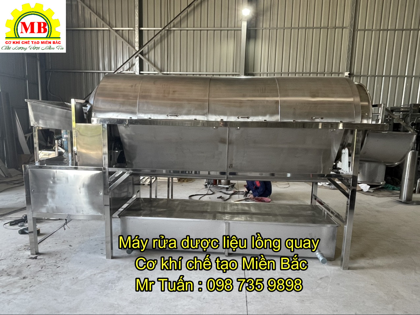 - Chính vì lí do đó Cty cơ khí chế tạo Miền Bắc đã nghiên cứu và chế tạo ra máy rửa nguyên liệu lồng quay giúp khắc phục toàn bộ vấn đề còn sót lại do các loại máy rửa khác còn tồn đọng.